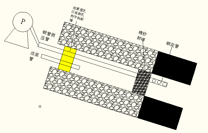 此過程也可采用分段注漿法:即先向孔內(nèi)注入少量較高濃度配比的漿液,待經(jīng)過30-50分鐘后,再向孔內(nèi)注入正常配比的漿液直至注滿。